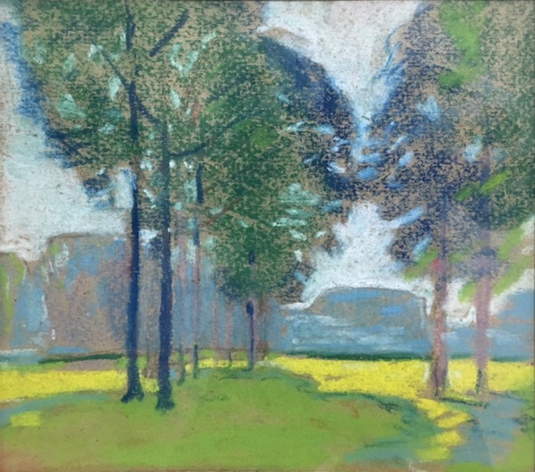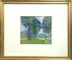Albert Krehbiel was a devoted painting instructor, maintaining a full class schedule at the Art Institute of Chicago throughout much of the second decade of the twentieth century. In 1913, he additionally joined the faculty at the Armour Institute of Technology (later the Illinois Institute of Technology) as an instructor of architectural drawing. He continued to paint and exhibit his work at annual juried exhibitions, particularly those at the Art Institute of Chicago. Indeed, Krehbiel’s legacy is best manifested by his extensive exhibition record at the Art Institute, where he showed over thirty times from 1906 through 1939, including a one man show in 1922. Krehbiel’s painting by the middle teens maintained a fluid, naturalistic approach, capturing the immediacy of light, atmosphere and color of a specific moment in time. on.