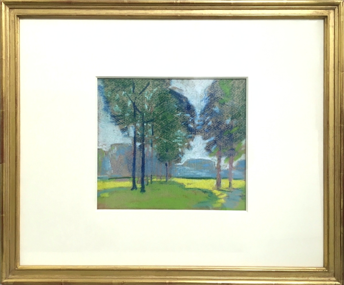 In the 1920s, Albert Krehbiel became a leading figure of the Chicago Art Institute Summer School of Painting (later named Ox-Bow) in Saugatuck, Michigan. The school, founded in 1910 by a group of Chicago artists led by Frederick Fursman, became a popular destination for artists and students throughout the Midwest. Krehbiel became an influential instructor at the school from 1926 through 1932. In 1934, he founded his own art school in Saugatuck, named The AK Studio. Much of Krehbiel’s artwork completed in Michigan throughout the 1920s and 30s is best expressed in his numerous pastels. Absorbed with his classes and teachings during the summer sessions, he often had little time to complete large canvasses. He enjoyed the freshness and portability of working with pastels. These works, frequently completed in early morning or late afternoon, often depict serene sunlit views of the Kalamazoo River and the rolling landscape surrounding Saugatuck.
