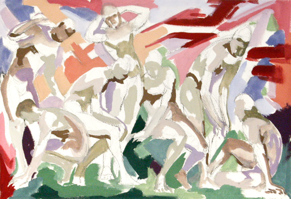 Albert Krehbiel continued to embrace and experiment with different styles of painting until late in his life. Throughout the 1930s and early 40s, he completed numerous cubist and synchromist figure studies. These brightly rendered, angular compositions were taken directly from the postures of models in his art classes. In a letter dating 1942 to his son, Evans, Krehbiel wrote “...I never thought of them as nudes, but simply as a power in organization”. These images express a lyrical naturalism, yet advance stylistically towards geometric abstraction.