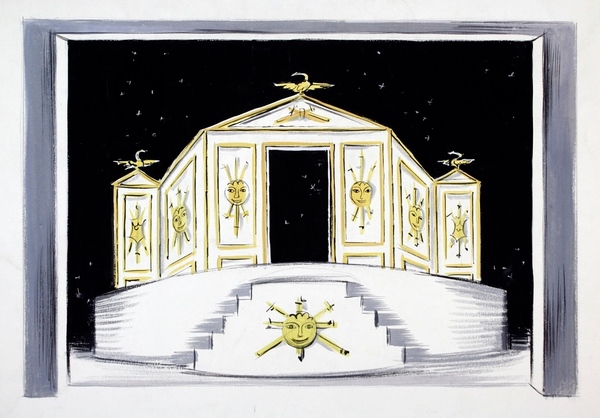 Born in Paris, France in 1914, Andre Delfau was a French artist, and internationally acclaimed stage set and costume designer who worked world-wide from the 1930s to the 1980s. Early in his career, Delfau created fashion designs for such major Paris couture houses as Balmain, Jean Patou and Balenciaga. He completed set designs and costumes for the Royal Danish Ballet, the Royal Ballet of Great Britain, the Paris Opera, the Dance Theater of Harlem, the Ruth Page International Ballet, the Civic Ballet of Chicago, the Chicago Opera Ballet and the Lyric Opera of Chicago, among others. Most notably, Delfau designed the elaborate stage sets and costumes for the 1986 PBS television production of the Viennese operetta, "Die Fledermaus".