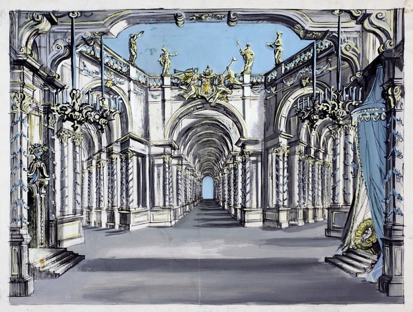 Born in Paris, France in 1914, Andre Delfau was a French artist, and internationally acclaimed stage set and costume designer who worked world-wide from the 1930s to the 1980s. Early in his career, Delfau created fashion designs for such major Paris couture houses as Balmain, Jean Patou and Balenciaga. He completed set designs and costumes for the Royal Danish Ballet, the Royal Ballet of Great Britain, the Paris Opera, the Dance Theater of Harlem, the Ruth Page International Ballet, the Civic Ballet of Chicago, the Chicago Opera Ballet and the Lyric Opera of Chicago, among others. Most notably, Delfau designed the elaborate stage sets and costumes for the 1986 PBS television production of the Viennese operetta, "Die Fledermaus".