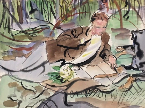 Untitled (Man Reading Beside his Dog), ca. 1950