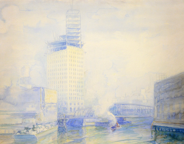 Charles Biesel was the father of artist Fred Biesel. He was born in New York in 1865 and worked as a lithographer and artist in New York, Philadelphia and Newport, RI before moving to the Chicago area in 1918. While in Newport, he co-founded the Newport Art Association in 1912. Biesel was stationed as a first lieutenant in the Ordinance Reserve Corps at the Rock Island arsenal and while later headquartered in Chicago, he conducted munitions inspections of Indiana steel mills and painted his surroundings of the Chicago river and its industry. He first exhibited at Donlon Galleries in the Fine Arts Building on Michigan Avenue.