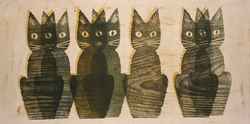 Untitled (Four Cats), ca. 1940Woodcut on paper9 1/2 x 19 3/4 inches#9480
