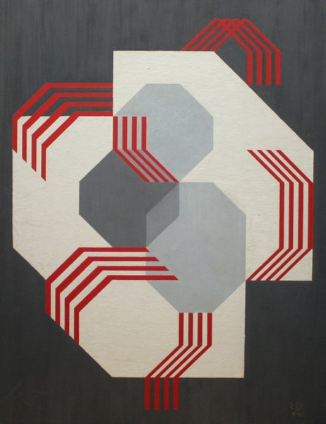 Born in Marengo, IL in 1912, Eugene Dana spent his early childhood living in Clinton, Iowa. In 1936, he earned a Bachelor’s Degree in Fine Arts from the University of Wisconsin, Madison and received a Master’s Degree in Fine Arts from the University of Michigan, Ann Arbor. In 1937, he studied Modern painting at the St. Paul School of Art with artists LeRoy Turner and Cameron Booth. In 1941, he studied at Harvard University with with the noted Bauhaus instructor, Josef Albers.