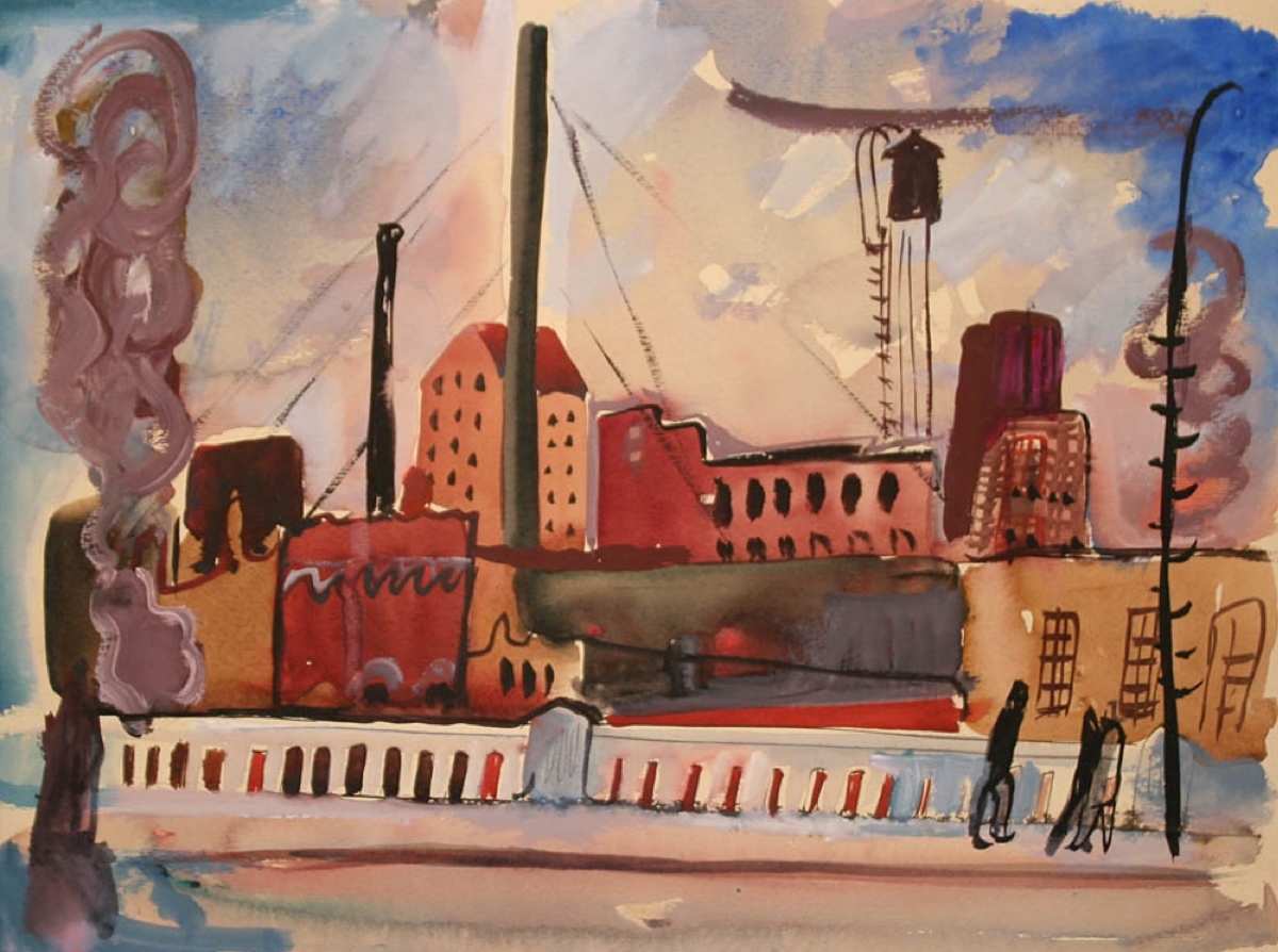 A prolific painter, Chapin produced numerous works while traveling in Mexico, France, Spain, Saugatuck and Martha’s Vineyard, where he frequently spent summers and taught at the Old Sculpin Gallery there. Chapin was best recognized for his dynamic and vibrant images of Chicago during the 1930s and '40s. Chapin was a resident of the city's Old Town neighborhood where he lived and kept his studio on Menomonee Street for many years. Described as a “colorful figure, nearly 6 feet 6 inches tall, and thin, and usually wearing tweeds”, it is easy to imagine Chapin at work observing the busy street life of the city.