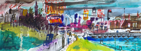 A prolific painter, Chapin produced numerous works while traveling in Mexico, France, Spain, Saugatuck and Martha’s Vineyard, where he frequently spent summers and taught at the Old Sculpin Gallery there. Chapin was best recognized for his dynamic and vibrant images of Chicago during the 1930s and '40s. Chapin was a resident of the city's Old Town neighborhood where he lived and kept his studio on Menomonee Street for many years. Described as a “colorful figure, nearly 6 feet 6 inches tall, and thin, and usually wearing tweeds”, it is easy to imagine Chapin at work observing the busy street life of the city.