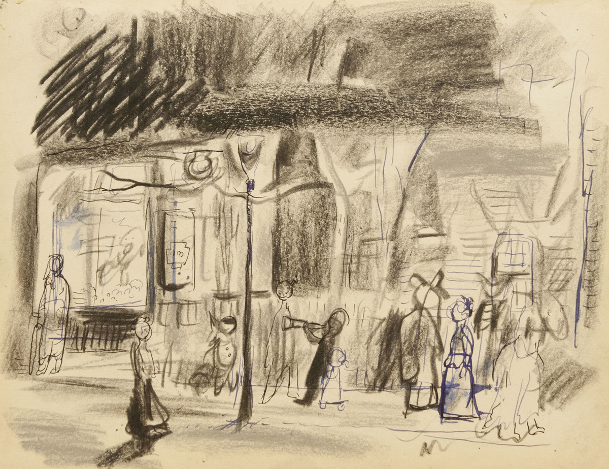 A prolific painter, Chapin produced numerous works while traveling in Mexico, France, Spain, Saugatuck and Martha’s Vineyard, where he frequently spent summers and taught at the Old Sculpin Gallery there. Chapin was best recognized for his dynamic and vibrant images of Chicago during the 1930s and '40s. Chapin was a resident of the city's Old Town neighborhood where he lived and kept his studio on Menomonee Street for many years. Described as a “colorful figure, nearly 6 feet 6 inches tall, and thin, and usually wearing tweeds”, it is easy to imagine Chapin at work observing the busy street life of the city.
