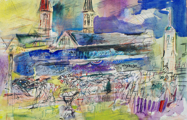 A prolific painter, Chapin produced numerous works while traveling in Mexico, France, Spain, Saugatuck and Martha’s Vineyard, where he frequently spent summers and taught at the Old Sculpin Gallery there. Chapin was best recognized for his dynamic and vibrant images of Chicago during the 1930s and '40s. Chapin was a resident of the city's Old Town neighborhood where he lived and kept his studio on Menomonee Street for many years. Described as a “colorful figure, nearly 6 feet 6 inches tall, and thin, and usually wearing tweeds”, it is easy to imagine Chapin at work observing the busy street life of the city.