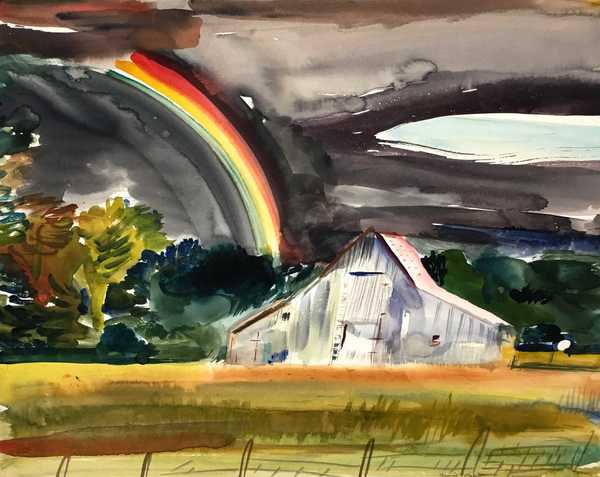 Untitled (Country Farm and Rainbow), ca. 1935