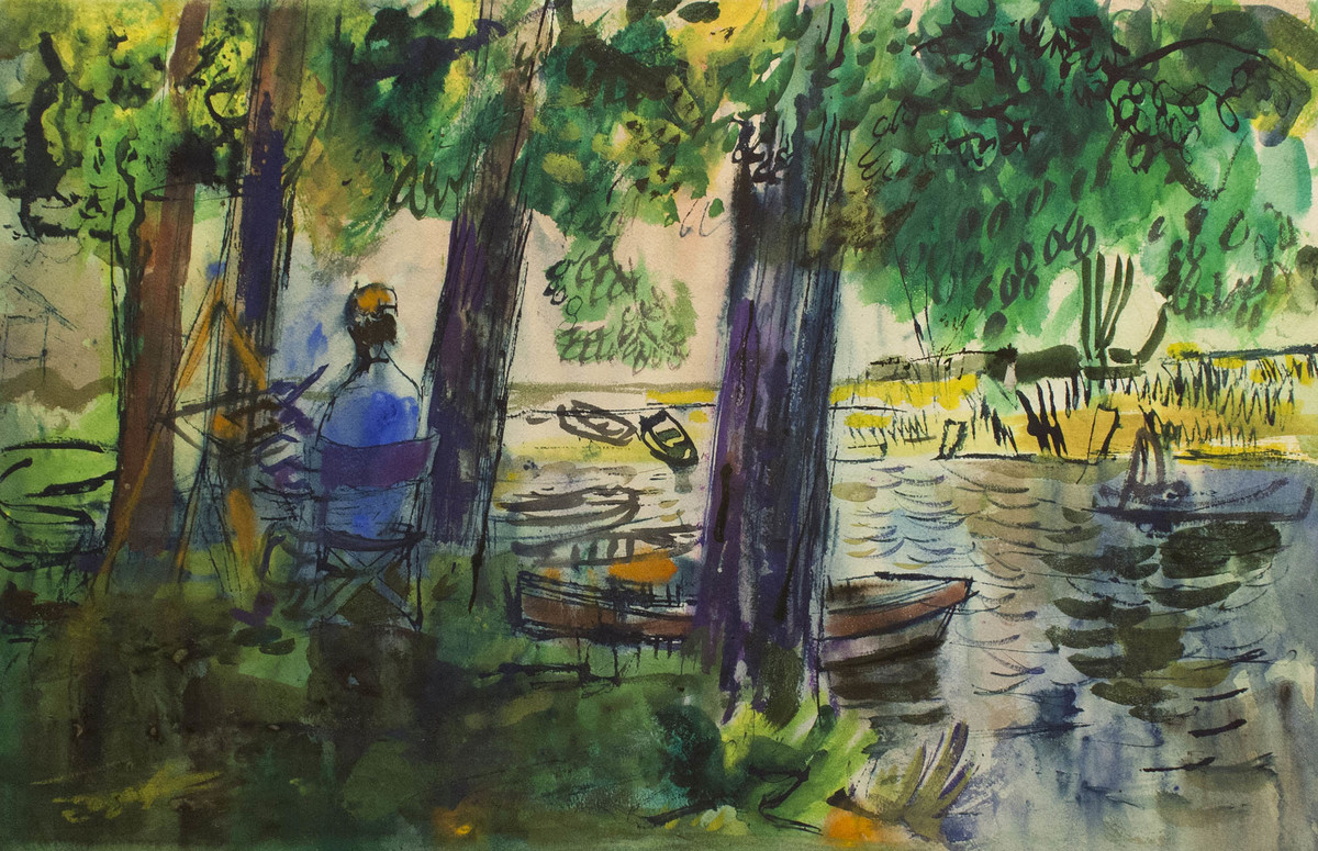 A prolific painter, Chapin produced numerous works while traveling in Mexico, France, Spain, Saugatuck and Martha’s Vineyard, where he frequently spent summers and taught at the Old Sculpin Gallery there. Chapin was best recognized for his dynamic and vibrant images of Chicago during the 1930s and '40s. Chapin was a resident of the city's Old Town neighborhood where he lived and kept his studio on Menomonee Street for many years. Described as a “colorful figure, nearly 6 feet 6 inches tall, and thin, and usually wearing tweeds”, it is easy to imagine Chapin at work observing the busy street life of the city.