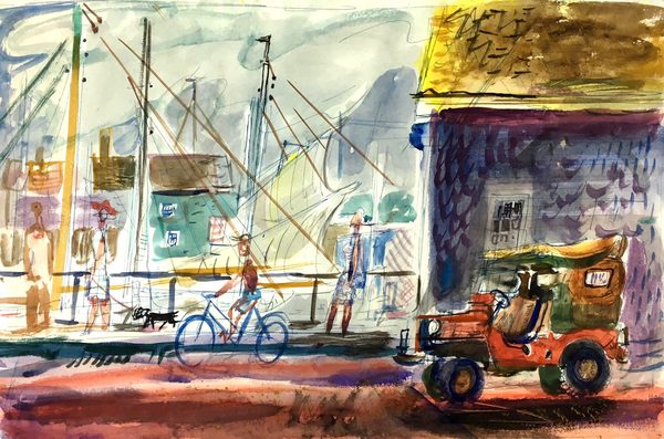 Untitled (Harbor Scene with Jeep), ca. 1950s