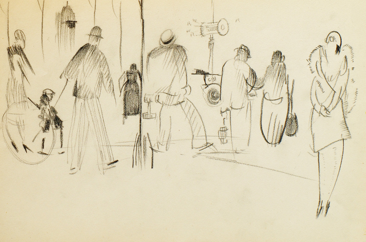 A prolific painter, Chapin produced numerous works while traveling in Mexico, France, Spain, Saugatuck and Martha’s Vineyard, where he frequently spent summers and taught at the Old Sculpin Gallery there. Chapin was best recognized for his dynamic and vibrant images of Chicago during the 1930s and '40s. Chapin was a resident of the city's Old Town neighborhood where he lived and kept his studio on Menomonee Street for many years. Described as a “colorful figure, nearly 6 feet 6 inches tall, and thin, and usually wearing tweeds”, it is easy to imagine Chapin at work observing the busy street life of the city.