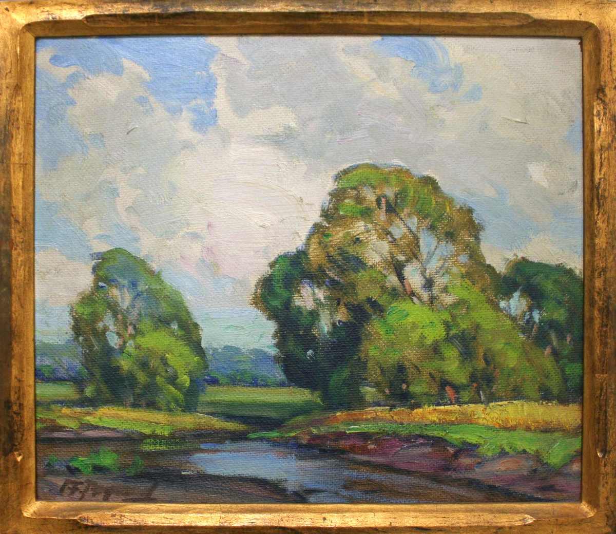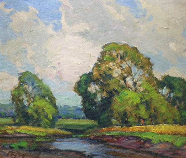 Frank Peyraud became one of the most notable Impressionist landscape artists active in Chicago during the early Twentieth Century. Originally born in Switzerland, Peyraud enrolled as an architecture student at the Ecole des Beaux Arts in Paris. In 1881, at age 22, he emigrated to Chicago where he spent the remainder of his illustrious career. Peyraud became best known for his large, tonal landscape paintings often executed in the early morning or twilight hours at dusk. He gained national acclaim for these atmospheric pictures through his many entries at the Annual Exhibitions of the leading museums around the country. In his lifetime, he exhibited over a hundred paintings at the Art institute of Chicago from 1891 to 1930.