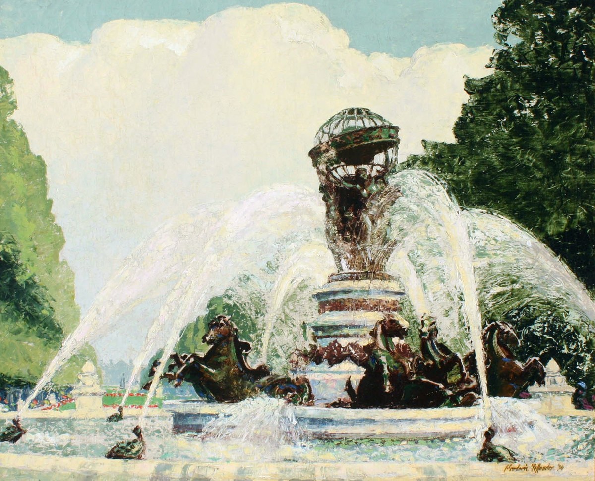 Frederic Tellander was born in Paxton Illinois in 1978. He was a largely self-taught artist, who achieved national acclaim for his paintings during the 1920s and '30s. While recognized as an important Chicago artist, he traveled abroad and frequently painted in Paris between the wars. He is best known for his triumphant views of both Paris and Chicago. Tellander also painted as a commercial artist and completed numerous print advertisements for the Studebaker Corporation, especially those created during WWII featuring the B-17 bomber, the "Flying Fortress". He exhibited at the annual exhibitions of the Art Institute of Chicago 93 times between 1910-1941, winning numerous prizes. His work can be found in the collections of the Union League Club of Chicago and the Illinois State Museum, among others. Tellander died in Elkhart, IN at the age of 99 in 1977.