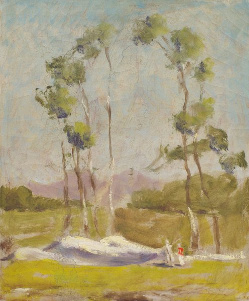George Snow Hill was born in Munsining, MI in 1898. Hill studied naval engineering and architecture at Lehigh University in Bethlehem, PA from 1917-18 and ultimately received his Bachelor’s degree from Syracuse, University in Syracuse, NY in 1923. He was awarded a fellowship for foreign study and went to Paris to study at the Acadamie Colarossi and the Academie de la Grande Chaumiere. He maintained his own studio in Paris during this time and painted and traveled throughout Europe. He exhibited regularly at the Salon des Artistes Francaise from 1923-1929 and had a one-man exhibition at Simonson Galleries in Paris in 1924. Also, in 1924, he was invited to exhibit a painting at the Royal Academy in London, England. He returned to the United States in 1929 and lived in New York City where he worked as a portrait painter. In 1932, he set up a studio in St. Petersburg, FL. Hill became known as one of the most-important muralists in Florida, which such commissions as the Pinellas County Courthouse/Clearwater Municipal Auditorium, Clearwater, FL, 1934, the Coast Guard Station in St. Petersburg, FL, 1937, Janus Administration Building of the Tampa, FL airport, 1938, U.S. Post Office murals in Perry, FL, 1940 and Milton, FL, 1941. He was also commissioned to do the murals for the Florida buildings at the Century of Progress Exhibition in Chicago, IL in 1933 and the New York World’s Fair in 1939. Hill exhibited at Ferargil Galleries in New York, NY in 1927 and 1929, the Syracuse Museum of Fine Arts, Syracuse, NY, 1927-32, Speed Art Museum, Louisville, KY, 1928, among others. In 1946, he founded the Hill School of Art in St. Petersburg, FL.