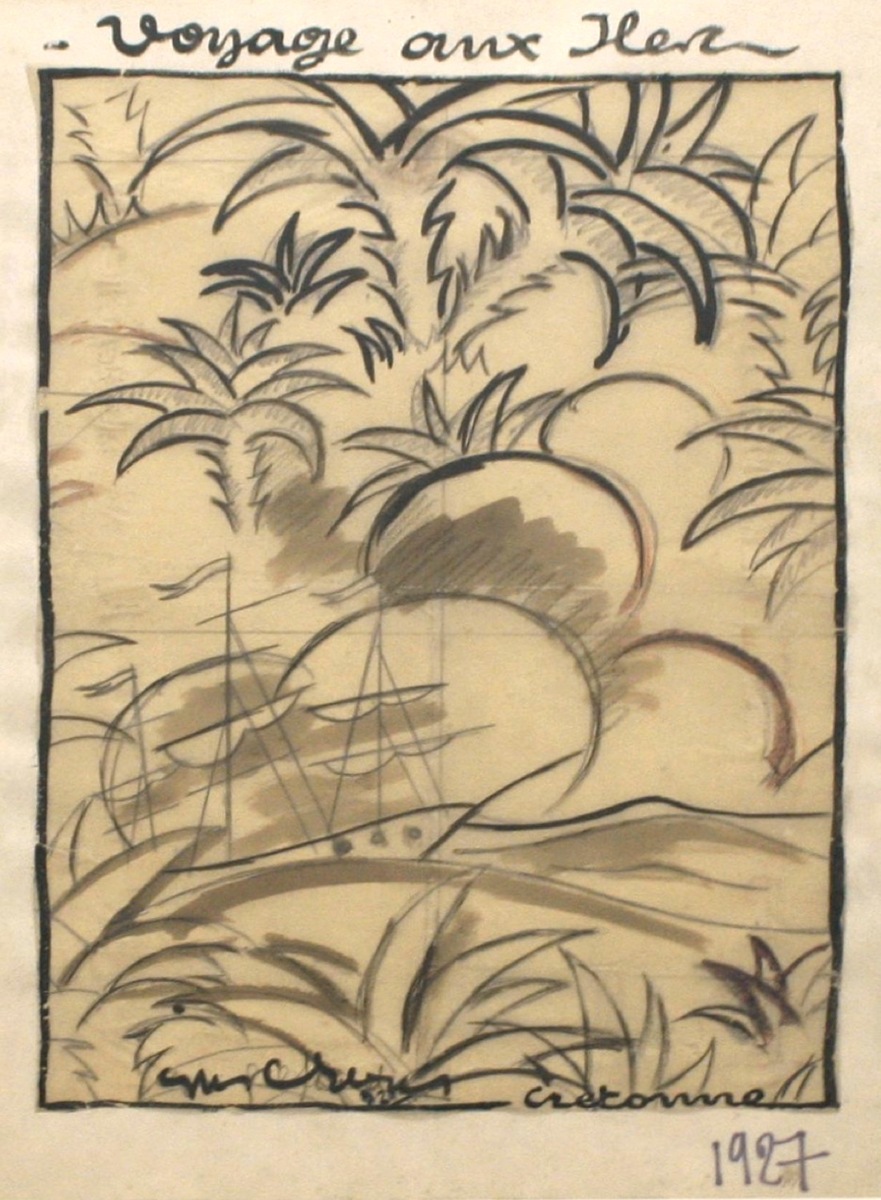 Georges Maurice Cloud was born in Brittany, France in 1909. He began his studies in fine art and design in Escoublac and La Baule. In the 1930s, Cloud attended the Beaux-Arts Academy in Paris, where he was awarded a First Prize for his artwork in 1937. Cloud became a member of the Groupe de Puteaux, whose members included Fernand Léger and Albert Gleizes, among others. He worked professionally as an architect and became a successful designer of interiors and furniture in both Paris and Brittany. He worked as a draftsman for the noted Atelier d’Architecture de Pierre et Charles-Édouard Jeanneret. Charles-Édouard Jeanneret, is best known under his pseudonym, Le Corbusier. Cloud even worked on Le Corbusier’s most famous project, “Savoye House”. Cloud also worked independently as a fine artist, and throughout his career completed numerous mural and advertising commissions. He painted frescoes and designed furniture for numerous transatlantic ocean liners, such as the famed Ile de France and the Normandie. He exhibited at the Salon des Sur-Independants and at other venues throughout France. The artist died in France in 1973.