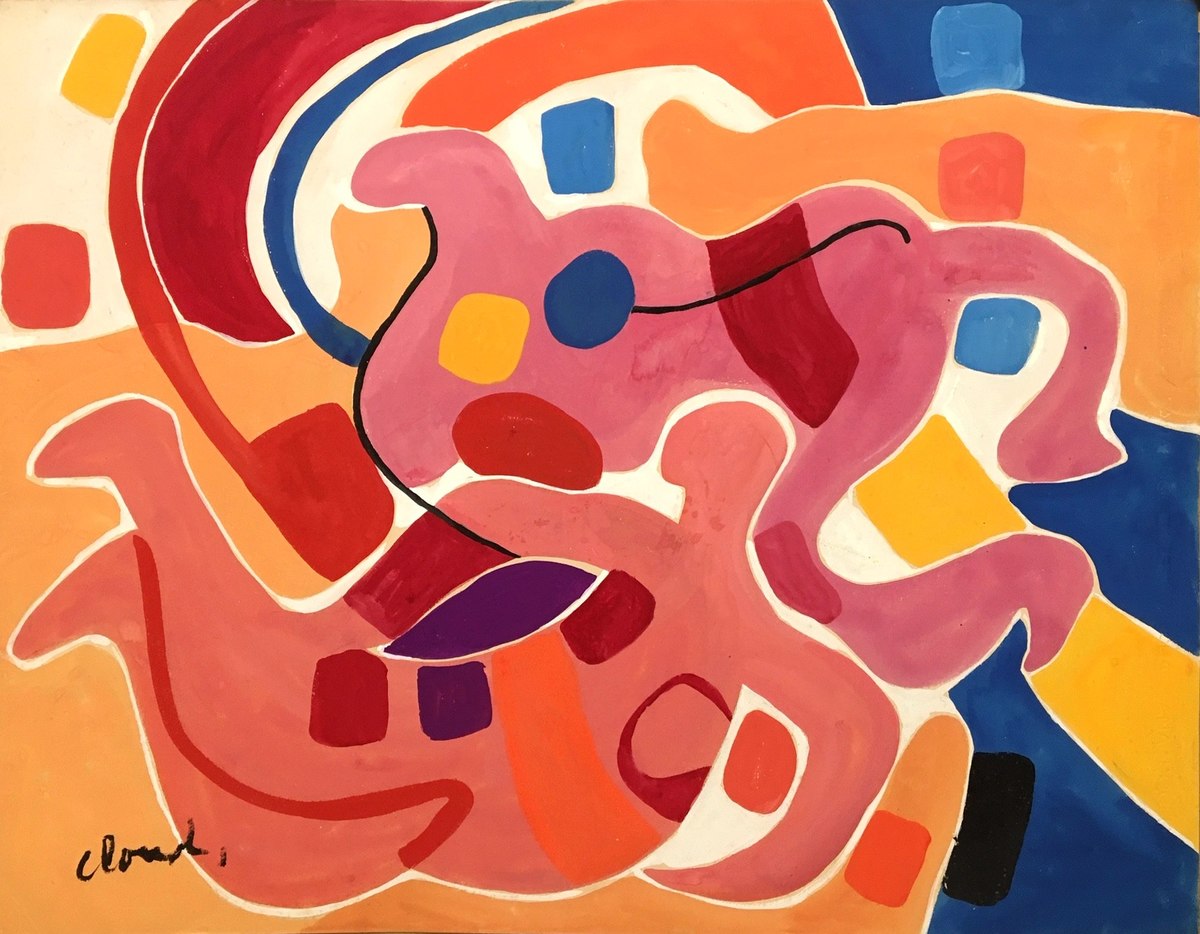 Georges Maurice Cloud was born in Brittany, France in 1909. He began his studies in fine art and design in Escoublac and La Baule. In the 1930s, Cloud attended the Beaux-Arts Academy in Paris, where he was awarded a First Prize for his artwork in 1937. Cloud became a member of the Groupe de Puteaux, whose members included Fernand Léger and Albert Gleizes, among others. He worked professionally as an architect and became a successful designer of interiors and furniture in both Paris and Brittany. He worked as a draftsman for the noted Atelier d’Architecture de Pierre et Charles-Édouard Jeanneret. Charles-Édouard Jeanneret, is best known under his pseudonym, Le Corbusier. Cloud even worked on Le Corbusier’s most famous project, “Savoye House”. Cloud also worked independently as a fine artist, and throughout his career completed numerous mural and advertising commissions. He painted frescoes and designed furniture for numerous transatlantic ocean liners, such as the famed Ile de France and the Normandie. He exhibited at the Salon des Sur-Independants and at other venues throughout France. The artist died in France in 1973.