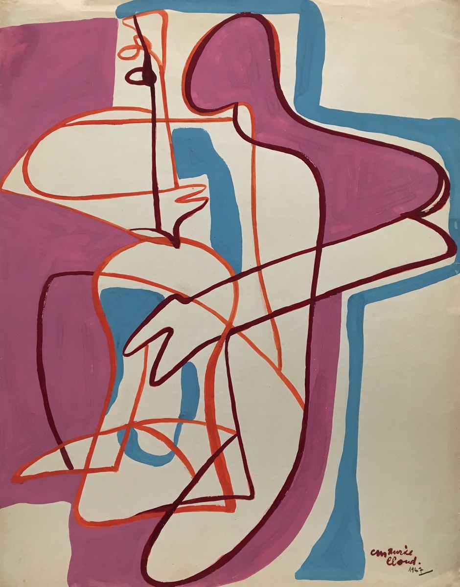 Georges Maurice Cloud was born in Brittany, France in 1909. He began his studies in fine art and design in Escoublac and La Baule. In the 1930s, Cloud attended the Beaux-Arts Academy in Paris, where he was awarded a First Prize for his artwork in 1937. Cloud became a member of the Groupe de Puteaux, whose members included Fernand Léger and Albert Gleizes, among others. He worked professionally as an architect and became a successful designer of interiors and furniture in both Paris and Brittany. He worked as a draftsman for the noted Atelier d’Architecture de Pierre et Charles-Édouard Jeanneret. Charles-Édouard Jeanneret, is best known under his pseudonym, Le Corbusier. Cloud even worked on Le Corbusier’s most famous project, “Savoye House”. Cloud also worked independently as a fine artist, and throughout his career completed numerous mural and advertising commissions. He painted frescoes and designed furniture for numerous transatlantic ocean liners, such as the famed Ile de France and the Normandie. He exhibited at the Salon des Sur-Independants and at other venues throughout France. The artist died in France in 1973.