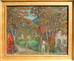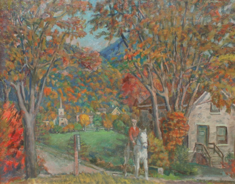 Gerrit V. Sinclair’s paintings chronicled American life in Wisconsin and the Midwest from the 1920s through the 1950s. While he served in Italy during World War I as an ambulance driver and also painted in Paris in 1930, Sinclair largely ignored modern European trends in art in favor of developing a warm figurative style that embraced the dignity of life in ordinary American towns and rural locales. Sinclair’s regionalist views of the American scene focus on the “virtues of family, patriotism, hard work and the simple pleasures of daily life”. An instructor at the Layton School of Art, Sinclair influenced numerous young artists getting their start in Milwaukee. In addition, Sinclair worked for the WPA during the Great Depression, completing murals entitled “Lumbering” and “Rural Mail” for the Federal Building in Wasau, Wisconsin.