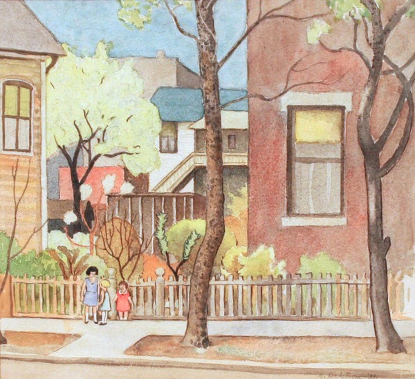 Born in 1893 in the town of Visby on the Swedish island of Gotland, Gustaf Dalstrom immigrated to the United States in 1901. He lived between Chicago and Manistee, MI in his youth, with an aunt who was a seamstress and uncle who was a lumberman. Dalstrom attended Lane Technical High School in Chicago. One of his first jobs was as a clothes cutter for a wholesale tailor and uniform maker, Ed V. Price & Co. He began his studies at the Art Institute of Chicago during this time, but was interrupted by WWI. After his service, he resumed his studies at the Art Institute of Chicago and worked for Faithorne Engraving Company making posters. Dalstrom studied at the Art Institute of Chicago with George Bellows and Randall Davey. He spent two years working for an engraving company in St. Louis before returning to Chicago and marrying fellow artist Frances Foy in 1923. In 1928, Dalstrom and Foy departed for a grand painting tour of Europe, where they stayed in Ernest Hemingway’s apartment in Paris. Also, in 1928, Dalstrom, Foy and fellow artist friends V.M.S. and Hazel Hannell, Frances Strain, Fred Biesel and Emil Armin founded a group called “10 Artists of Chicago”. Best known as a muralist, Dalstrom was a supervisor for the mural division of the WPA and Administrator for the Illinois Federal Art Project. Some of Dalstrom’s mural projects include the Haishe Memorial Library, DeKalb, IL (1934), “Illinois Farm” for the Gillespie, IL post Office (1935), State Hospital, Manteno, IL (1936), “The History of Transportation” for the Lawson School, Chicago, IL (1937), “The Great Indian Council -- 1833” for the Chestnut Street Post Office, Chicago, IL (1938) and “George Rogers Clark Conferring with Indians Near Herrin” for the Herrin, IL post office (1940). In 1927, Dalstom became president of the prestigious Chicago Society of Artists. He exhibited at the Art Institute of Chicago 45 times between 1919 and 1949, winning a gold medal for excellence in 1946 and the important Logan Medal in 1948. He also exhibited with the Society of Independent Artists in New York, the Chicago Society of Artists, the Renaissance Society of the University of Chicago and the No-Jury Society of Artists. He exhibited at the Whitney Museum, New York, NY, and the Museum of Modern Art in New York purchased his entry from the 1939 World’s Fair in New York. Later in life, Dalstrom served on the staff of the Field Museum of Chicago, where he designed exhibits. He died in Chicago in 1971.