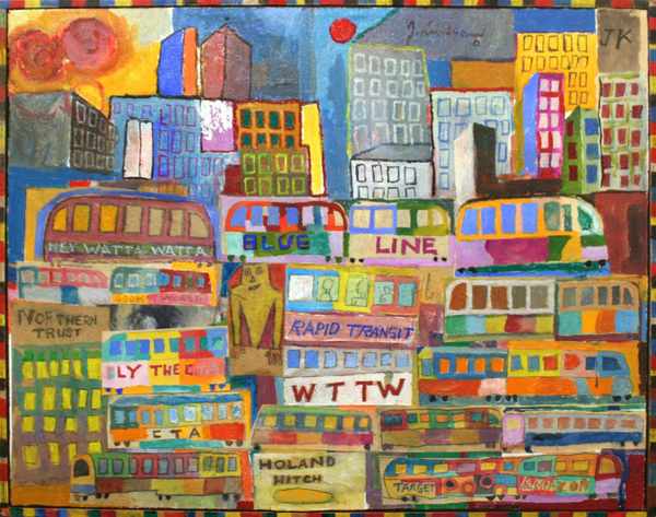 John A. Knudsen was born in 1937 in Brooklyn, MI raised in Chicago, IL. The son of a Lutheran minister, Knudsen’s family frequently moved to different locales, providing Knudsen with life experiences in both urban and rural settings. These varied venues provided inspiration for his drawing and painting.