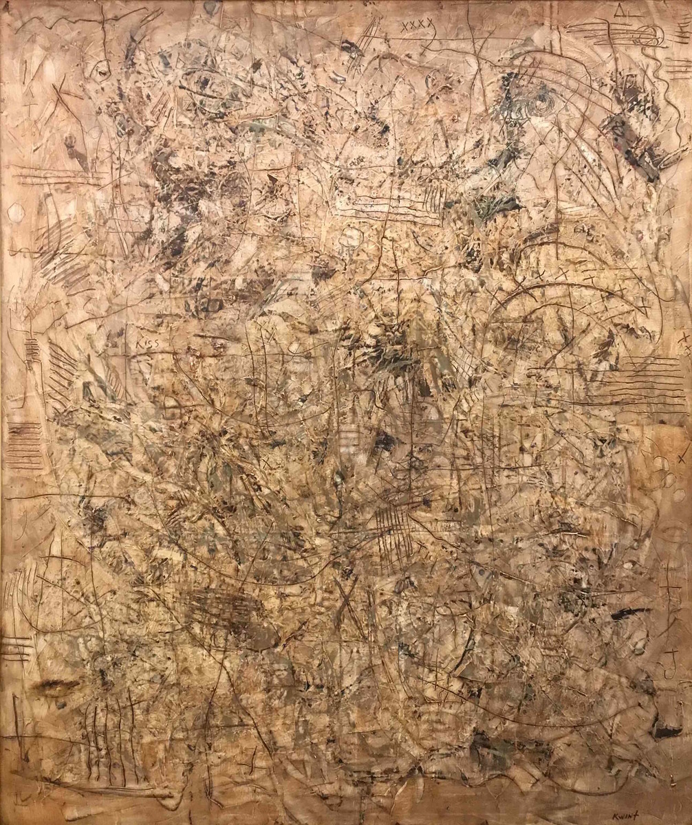 Painting from his mind’s eye, Kwint prepared his surfaces with various materials such as marble dust, acrylic medium and oil paint. Often, these materials were layered and mixed to create a richly textured surface. Kwint used various tools to carve and mark the surfaces of his paintings, revealing the foundational layers of medium and capturing a unique and expressive mark. Kwint's work explores the innate gestures of painting and acts as a record of his own personal energy. Kwint’s artwork is often non-objective and abstract, offering the viewer an invitation to contemplate and interpret their subjective meanings. His marks echo a primitive, symbolic language- recognizable, yet neither literal nor predictable. Kwint’s paintings ask the viewer to enter the same creative mind-space as the artist and make their own meaning of the visual information in his works.