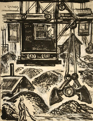 Coal Yard, 1945Ink and gouache on paper12 x 9 inches