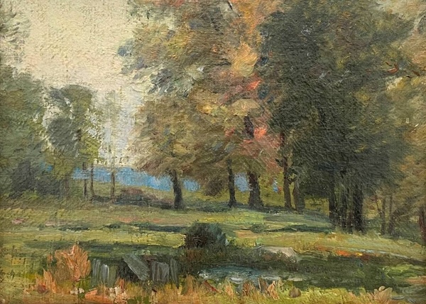 Oliver Dennett Grover was born in Earlville, IL in 1861 to prominent lawyer and abolitionist Alonzo Jackson Grover. Grover’s family moved to Chicago and he spent his childhood and youth taking classes at the Chicago Academy of Design. He studied law at the University of Chicago and from 1879-1880 enrolled at Munich’s Royal Academy, where he traded his law studies for art. It was here that he studied with Frank Duvaneck and became one of the “Duvaneck Boys”. The “Duvaneck Boys” were a group of artists studying with Duvaneck that included John Henry Twachtman, Otto Bacher, Julius Rolshoven, and Herman Wessel. In 1880, Grover exhibited at Munich’s International Exposition. Grover continued his studies with Duvaneck and followed him to Venice and Florence. He also studied in Paris at the Academie Julian from 1882-1885 with Gustave Boulanger, Jean-Paul Laurens and Jules Joseph Lefebvre.