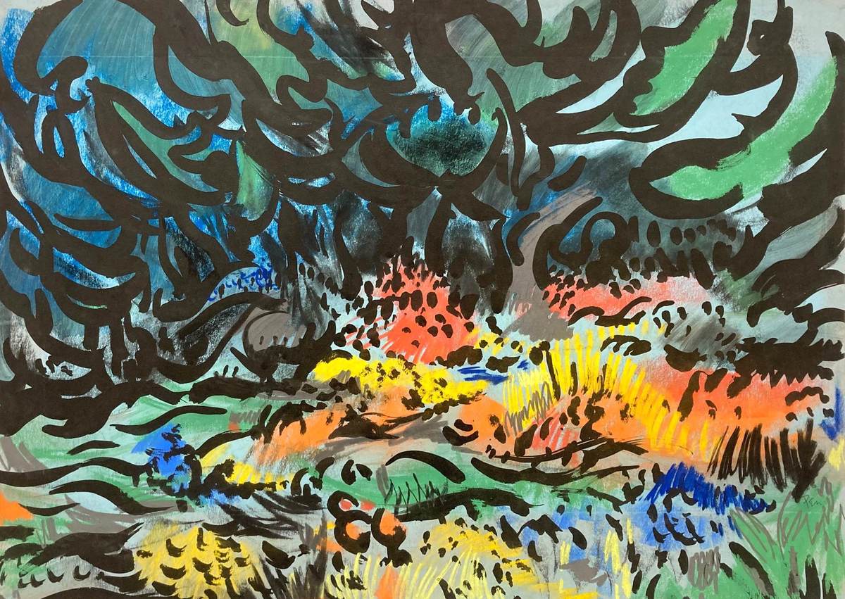 Watercolor, pastel and graphite on paper