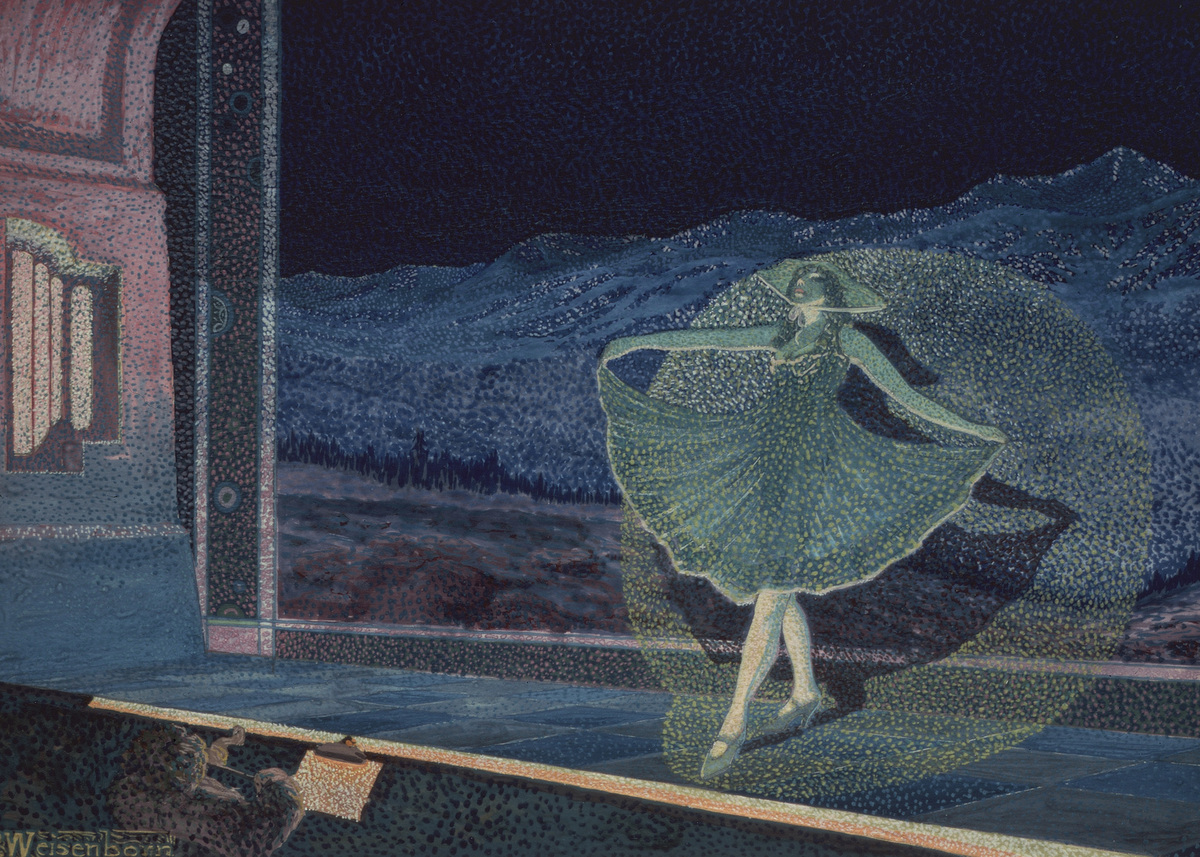 Around 1912, he settled in Chicago and worked as a window designer for Marshall Field’s. Weisenborn is best known as the founder of the Chicago No-Jury Society of Artists. The group was founded because many artists could not get their work accepted into the mainstream Art Institute shows. Weisenborn is quoted as saying that he harbored feelings of disdain for any jury and that his own paintings were frequently rejected by conservative jurors. He was also involved and helped found other radical artist’s groups such as the Salon des Refuses, Cor Ardens and Neo-Arlimusic. In 1936, he helped found the New York-based American Abstract Artist’s Group. He created the only abstract mural for the 1933 Century of Progress Exhibition in Chicago and also worked for the Federal Arts Project in the Easel Division. His WPA murals can be found in Crane Technical High School and Nettlehorst Elementary School in Chicago, IL. In 1945, Chicago businessman Herman Spertus commissioned Weisenborn to paint the mural “The Fighting Navy” for the Great Lakes Naval Training Station. He taught at Hull House (1920), the Chicago Academy of Fine Arts (1922-34), his own Weisenborn Art School (1934-64), and the Austin, Oak Park, River Forest Art League in Oak Park (1941). Weisenborn died in Chicago in 1974.