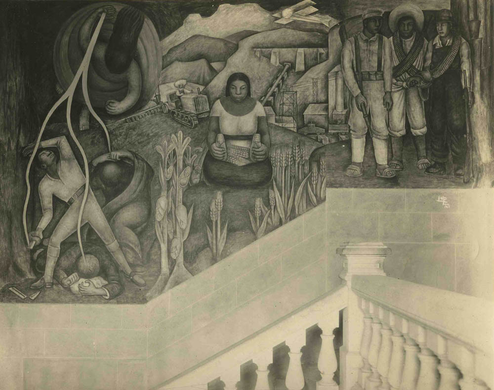Due to the on-going affair between Modotti and Weston, Modotti’s husband moved to Mexico where he died of smallpox. This tragedy and the death of her father made Modotti dissatisfied with Hollywood. Modotti and Weston arrived in Mexico in 1923 at a time when the country was in the midst of a social, political and cultural revolution. She photographed the Mexican revolutionary culture and these are among her best known works. Modotti became friends with Diego Rivera and other artists, writers and radicals within his circle and was greatly influenced by their Communist ideologies. Rivera, Clemente Orozco and other muralists asked her to photograph their works. The photographs in this collection are from these series. Modotti’s fascination with Communism drove she and Weston apart and they separated in 1926.