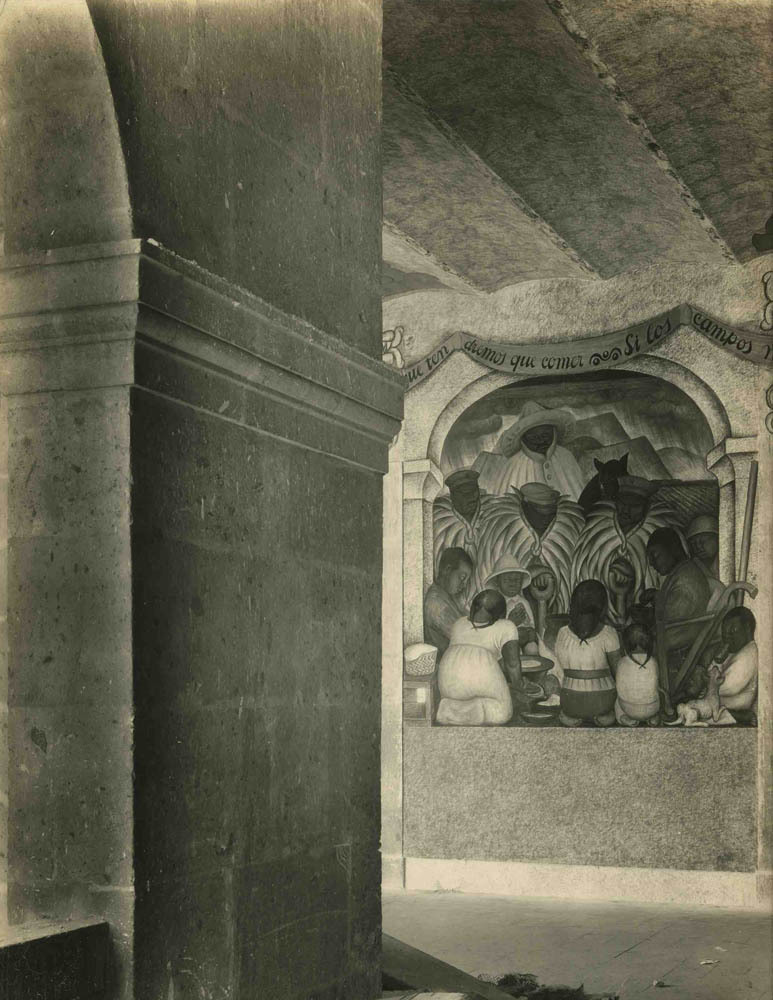 Due to the on-going affair between Modotti and Weston, Modotti’s husband moved to Mexico where he died of smallpox. This tragedy and the death of her father made Modotti dissatisfied with Hollywood. Modotti and Weston arrived in Mexico in 1923 at a time when the country was in the midst of a social, political and cultural revolution. She photographed the Mexican revolutionary culture and these are among her best known works. Modotti became friends with Diego Rivera and other artists, writers and radicals within his circle and was greatly influenced by their Communist ideologies. Rivera, Clemente Orozco and other muralists asked her to photograph their works. The photographs in this collection are from these series. Modotti’s fascination with Communism drove she and Weston apart and they separated in 1926.