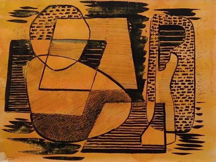 Werner Drewes was born in Niederlausitz, Germany in 1899. He served in WWI and then studied architecture and design in Berlin and Stuttgart. In 1921, he began studying with Paul Klee in Weimar at the Bauhaus. After a period of world travel, he returned to the Bauhaus in Dessau to continue his studies with Klee. At this time, he also studied with the noted avant-garde painter, Wassily Kandinsky. In 1930, Drewes moved to New York where he began teaching at the Brooklyn Museum. He became a U.S. citizen in 1937. In 1940, he was named Director of the WPA’s Graphic Arts Division. In 1945, Laszlo Moholy-Nagy asked Drewes to come to Chicago to teach at the New Bauhaus. From 1946 until his retirement in 1965, he became a revered instructor at the School of Fine Arts at Washington University in St. Louis, MO.