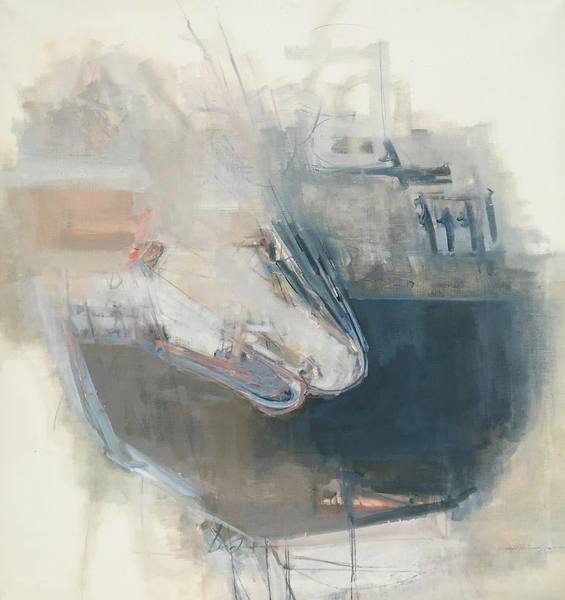 His artwork, typically abstract in nature, is executed with a limited range of color but with a great depth of scope. His tranquil compositions appear reminiscent of the broad aerial views the artist would have observed aloft from his flights in a B- 17 bomber. Upon a discerning look, viewers may recognize elements of reality, such as the patchwork of fields and rooftops seen from above. Outlines of aircraft fuselage may be interspersed with abstracted figural sketches and fragmented numerical equations. In one of his journals Dalziel wrote ”To represent these forces with shapes that have feeling. Not a decorative arrangement of meaningless shapes, but shapes that are vital and so alive that they project themselves with meaning.”