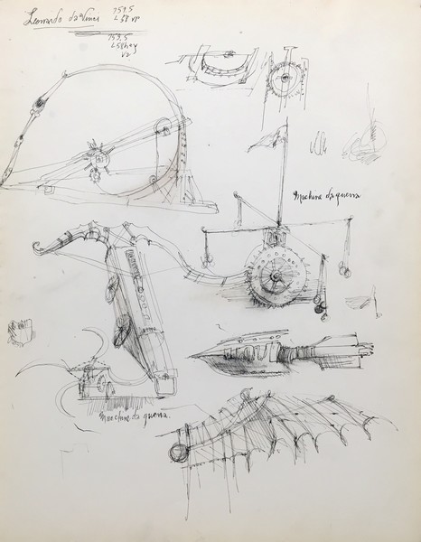 His artwork, typically abstract in nature, is executed with a limited range of color but with a great depth of scope. His tranquil compositions appear reminiscent of the broad aerial views the artist would have observed aloft from his flights in a B- 17 bomber. Upon a discerning look, viewers may recognize elements of reality, such as the patchwork of fields and rooftops seen from above. Outlines of aircraft fuselage may be interspersed with abstracted figural sketches and fragmented numerical equations. In one of his journals Dalziel wrote ”To represent these forces with shapes that have feeling. Not a decorative arrangement of meaningless shapes, but shapes that are vital and so alive that they project themselves with meaning.”
